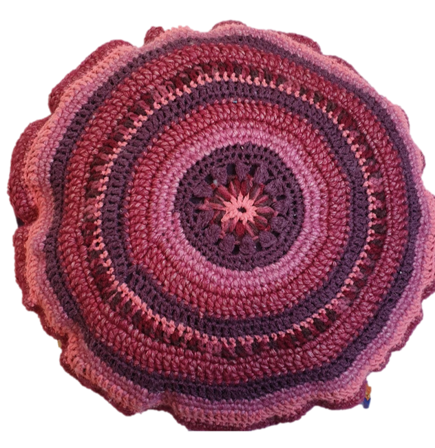 Gehaakte kussens in een variëteit aan kleuren en motieven.
